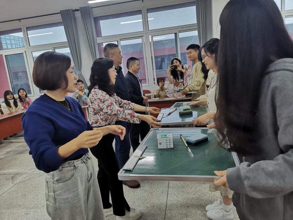 接着,公司领导为同学们发放了小黑板和粉笔等技能训练用具。研究生辅导员王陈超、研究生代表文杨以及本科生代表刘淇同学分别发言。