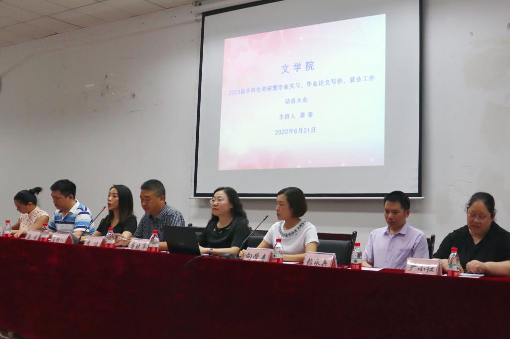 2022年6月21日晚上7点,公司于明辨楼2栋104召开2023届本科生考研暨毕业实习、毕业论文写作、就业工作动员会。本次动员会由公司党总支副书记姜希主持,党政领导班子、系主任、辅导员和2023届全体本科生参加。
