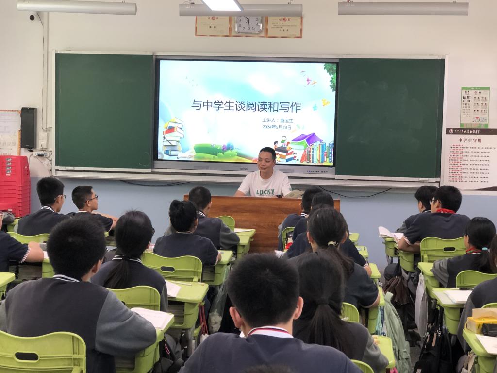 为进一步加强与实习基地的交流与合作,5月23日上午,应文德中学邀请,公司董运生老师为文德中学八年级员工做了一场主题为“与中员工谈阅读和写作”的文学交流课。