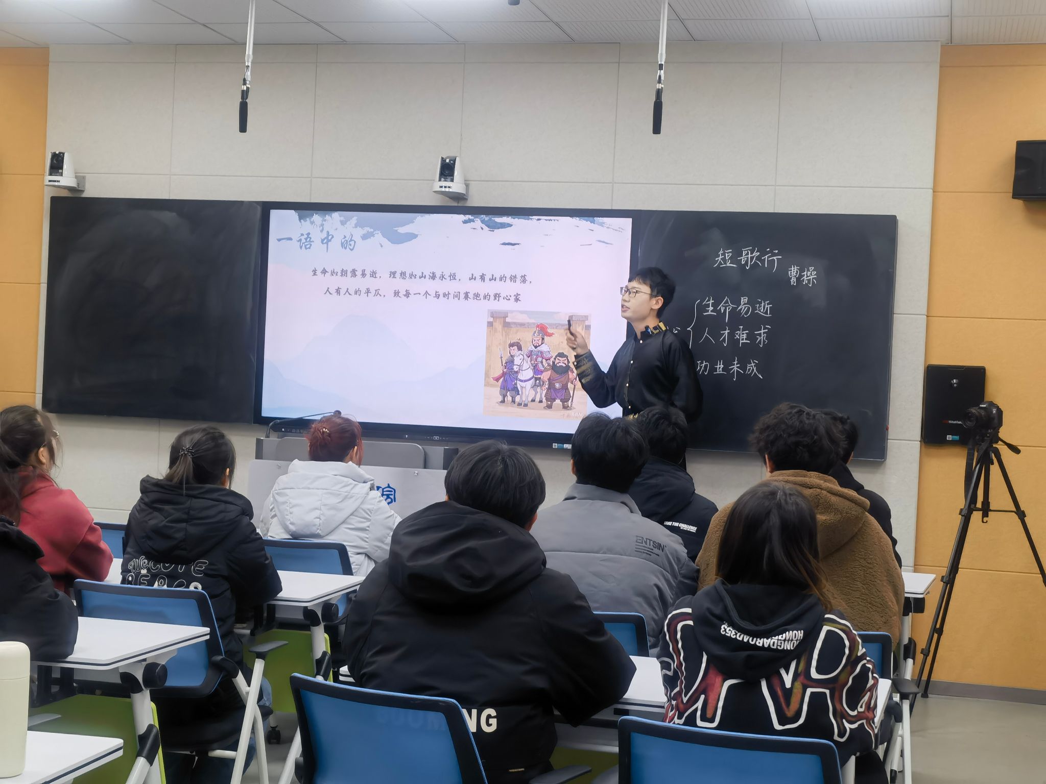 本次选拔赛分为初赛、复赛和决赛三个阶段。初赛中,60名参赛员工各展风采,他们以饱满的热情、扎实的功底,对经典诗词进行了精彩的讲解。经过评委们的认真评审,筛选出部分优秀员工晋级复赛。复赛阶段,竞争愈发激烈,选手们在诗词讲解中融入了更深入的理解和独特的见解,从诗词的创作背景、文学价值到情感内涵,都进行了细致入微的剖析,展现出了较高的专业水平和文学素养。最终,22级卓越班工作坊的张家豪同学凭借对《闻王昌龄左迁龙标遥有此寄》的“迢迢念君心,明月遥相寄”的精彩讲解,赢得了评委们的一致认可。他深入解读了李白在诗中所表达的对友人的关切与思念之情。23级卓越班工作坊的文翔同学在讲解《短歌行》时,以“因声求气,共读佳”的独特视角分析了曹操诗歌中的慷慨与智慧,以及激昂与求贤若渴的情怀,其扎实的知识储备和出色的表达能力,给评委和观众留下了深刻的印象。