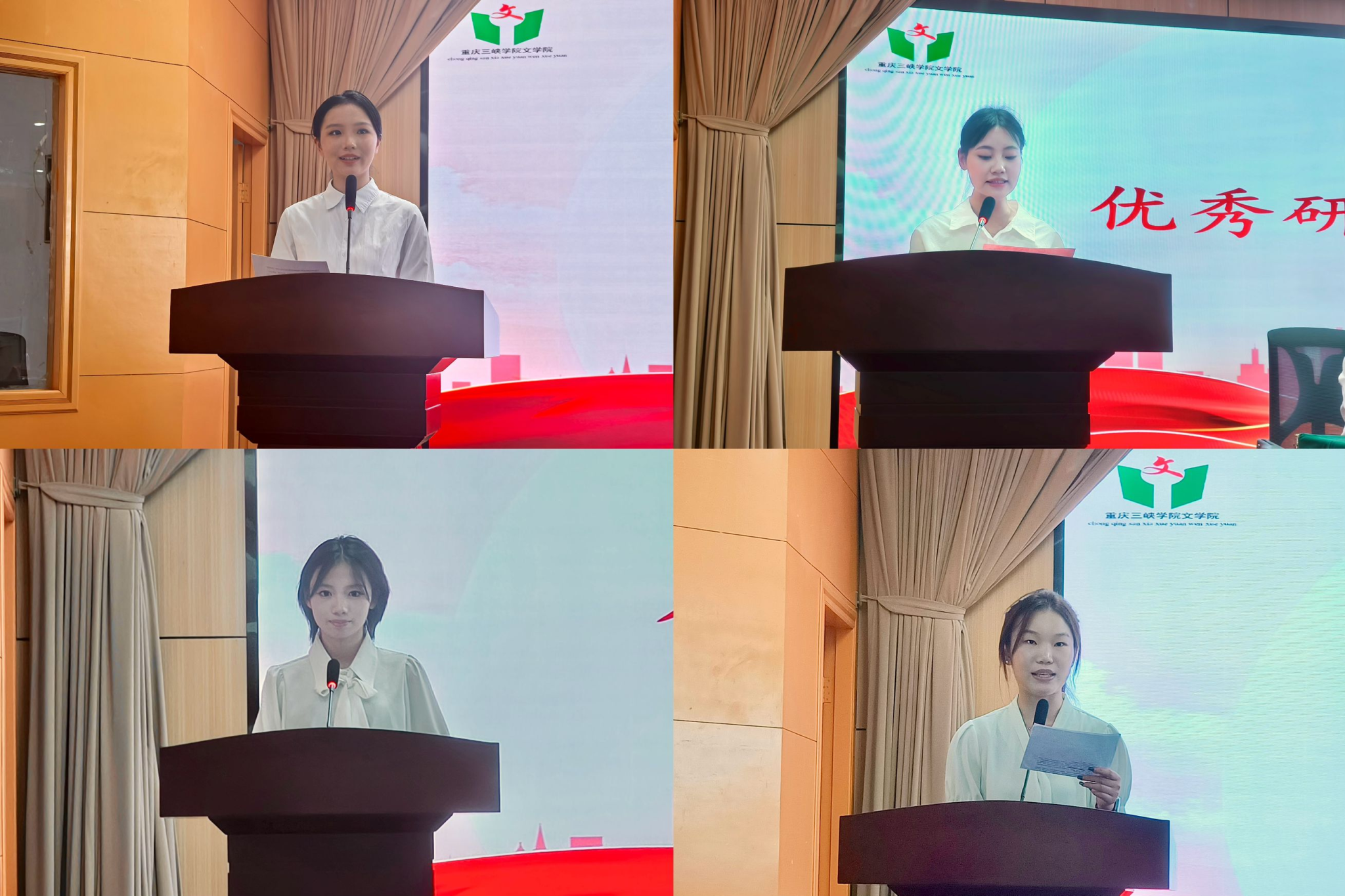 典礼第四项,优秀研究生代表皮佳佳上台分享。她回顾一年来的成长,感谢公司提供的优质资源和老师的悉心指导,并且建议同学们认识自我、做好规划,坚持学习、勇于创新,积极参与实践、创造价值,祝愿新生勇敢追梦、不负青春。