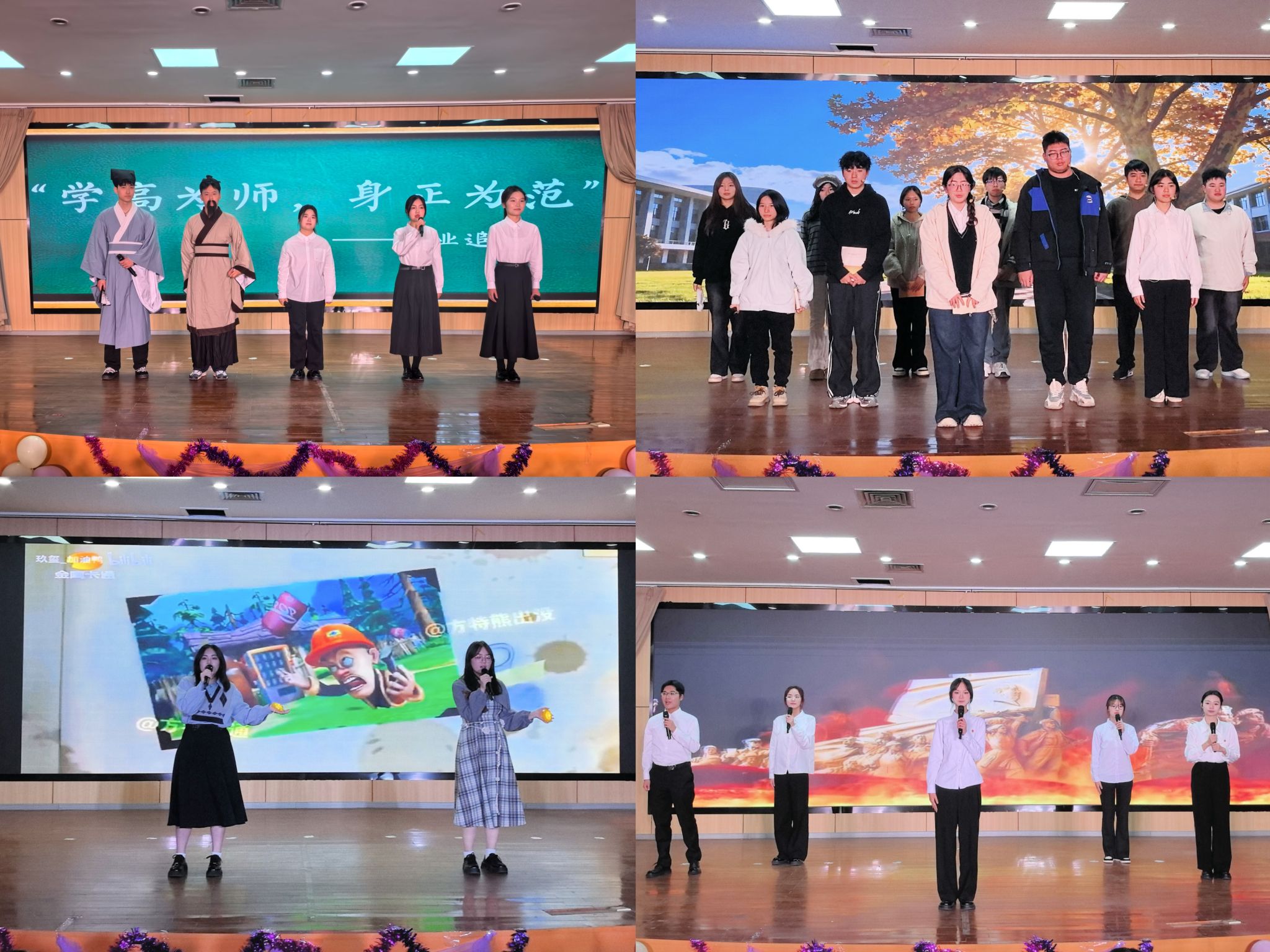 晚会在公司团学联部长的舞蹈串烧《青春跃动》中激情开场,瞬间点燃了全场的热情。紧接着,朗诵《跨越千年的师者对话》兼具唯美与磅礴,诵读者们用铿锵有力的声音,深刻诠释了中华文化的博大精深。舞蹈《Uptown Funk》活力四溢,舞者们用充满力量感的动作,展现出青春的蓬勃朝气。太极剑与二胡演绎的《青花瓷》,将国风美学与传统技艺创意融合,兼具视听之美。《青春歌曲串烧》覆盖了校园、励志、动画主题曲等风格,充满了青春回忆,唤醒了台下学子的青春记忆。情景剧《光环之下》聚焦评优展开,为新生敲响警钟。汉服社的舞蹈充满国风古韵,搭配《人间乐》的旋律,展现传统服饰与古典舞蹈的美感。歌曲《岁月里的花》以温柔声线传递出细腻情愫。朗诵《中国红》则以庄重饱满的语调,传递出家国情怀的感染力。《ONE SPARK》以跃动的节奏,让每一次旋转与定格都成为青春能量的爆发。最后,以大合唱《如愿》收尾,将“愿新生如愿成长”的祝福融入歌声,让温馨氛围弥漫现场,为晚会画上了圆满而温馨的句号。