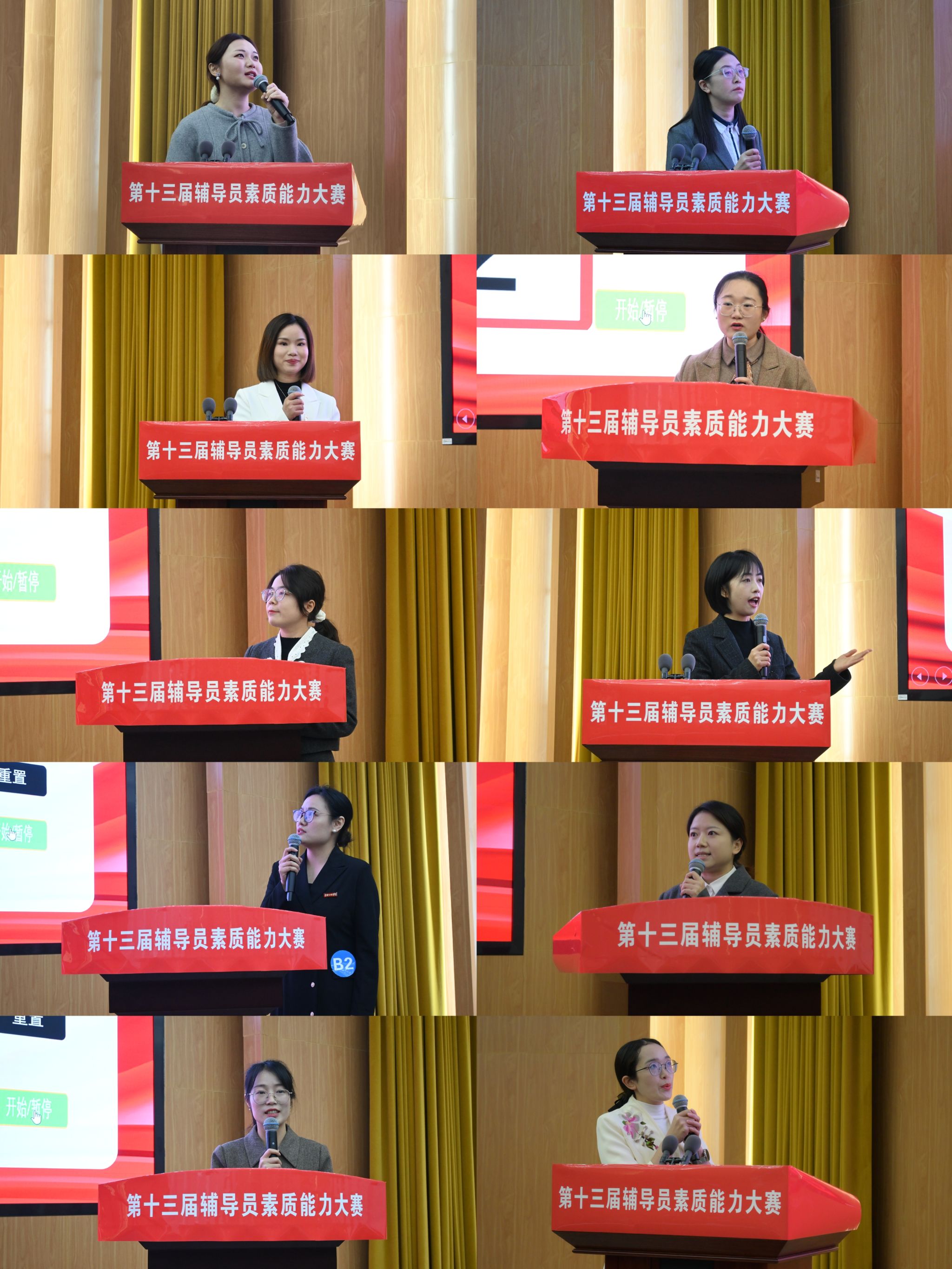 本次大赛分为初赛和决赛两个环节。初赛采用闭卷作答方式进行,重点考察辅导员的政治理论素养和工作业务知识,综合考评后确定10名辅导员进入决赛。决赛由案例研讨和谈心谈话两个环节组成。