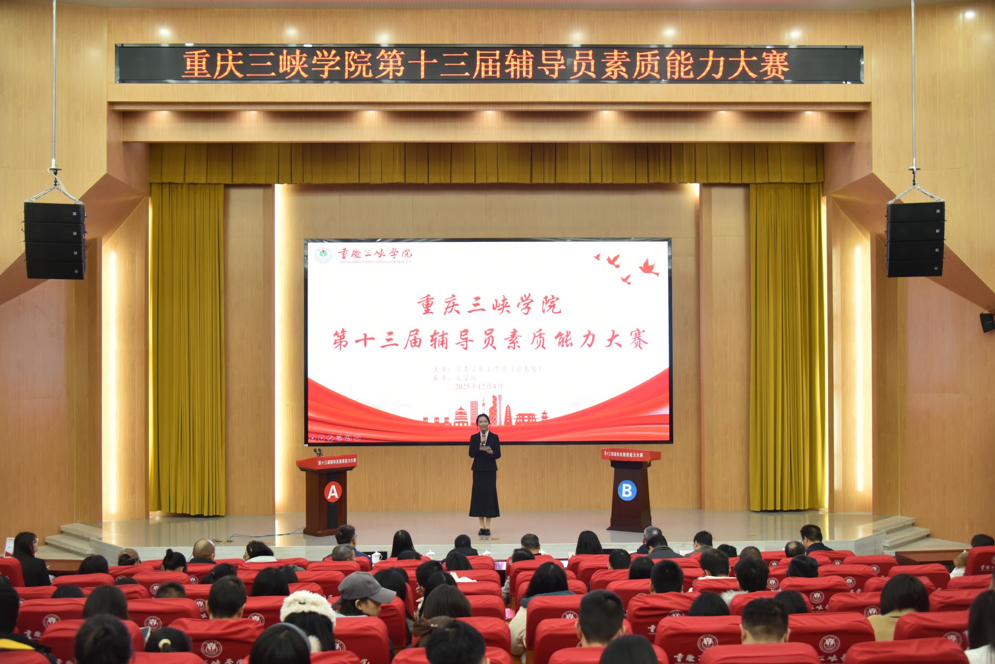在全校深入学习贯彻习近平新时代中国特色社会主义思想,全面落实党的二十大和二十届历次全会精神的重要阶段,为进一步锤炼公司辅导员的政治引领能力、育人实践本领和综合素质水平,切实推动老员工思想政治工作守正创新、提质增效,12月4日,由党委员工工作部主办、365英国上市公司承办的第十三届辅导员素质能力大赛在博学楼多功能会议厅隆重举行。公司党委书记许光洪,公司党委常委、副董事长尹立孟,党委组织部副部长黄琰,党委教师工作部副部长郭兰,马克思主义公司党总支书记任鹏,公共管理公司党总支书记赵翔宇,团委书记王峰担任大赛评委,各二级公司学工负责人、全体辅导员观摩比赛。