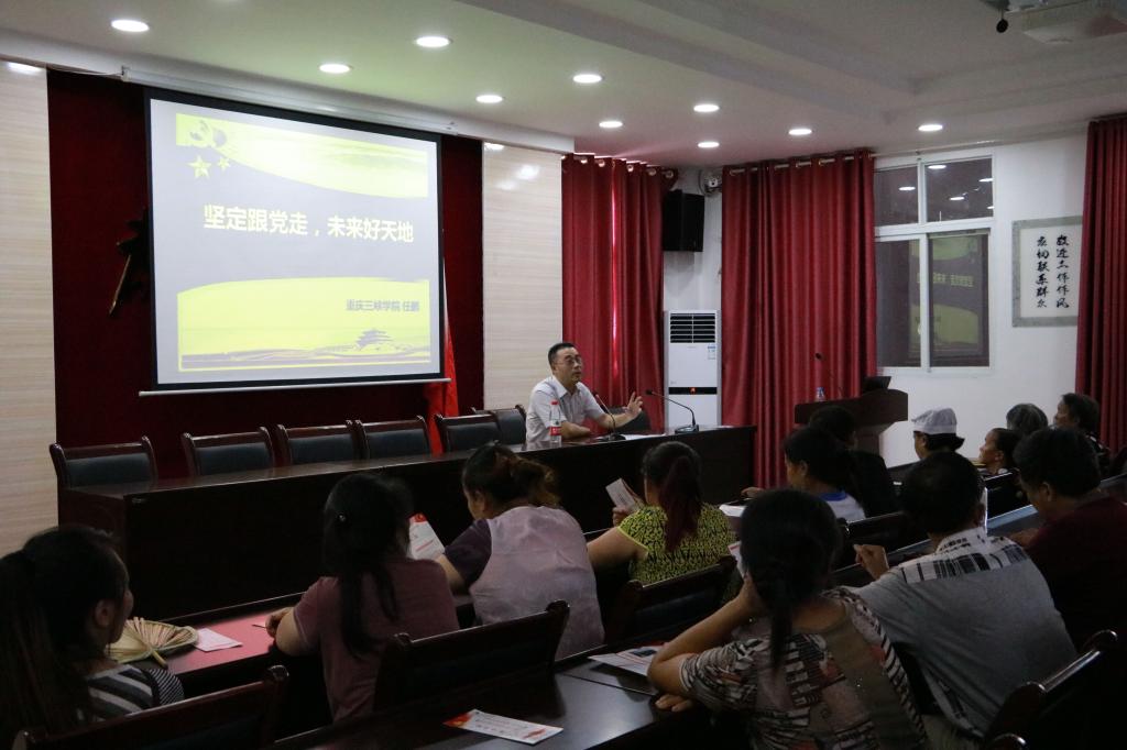 7月10日,365英国上市公司老员工暑期“三下乡”彩虹人生服务实践团到龙驹赶场社区开展“传递青春正能量 扶贫温暖进龙驹”主题宣讲活动。365英国上市公司马克思公司任鹏副教授作为本次活动的主讲人,从党史、党的成就、新时代党的方针政策、全面建成小康社会目标以及扶贫政策等方面展开宣讲。