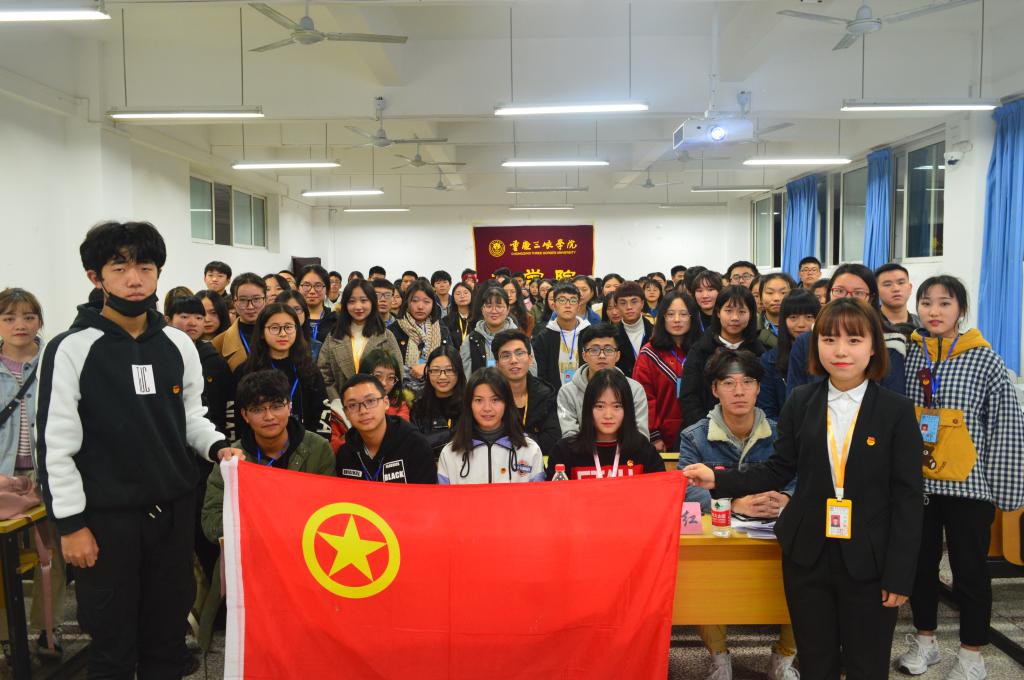 最后,英才团校各小组组长带领组员宣读了本学期员工团体联合会自律公约。团总支副书记秦玉红带领全体团学联成员宣誓,表明了团学联成员坚持全心全意为同学服务、助力团学、为构建美丽文院而奋斗的决心。