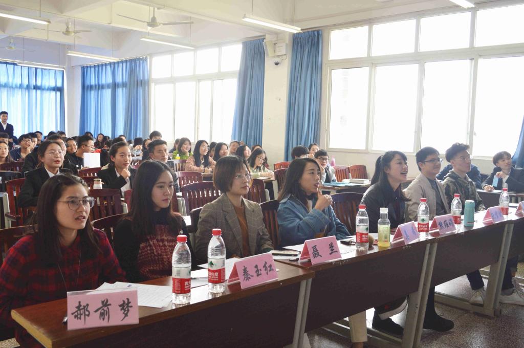今年“优良学风班”中期检查着重突出优良学风的创建过程,各班代表采用多种形式进行班级学风建设汇报,其中,2017级汉文一班聚焦“爱、凝聚、创新、向上”四个关键词,介绍了班级的学习生活情况,展示出班级昂扬向上的精神活力和积极良好的班级学风;2017级汉教二班代表则从“学习、养成、纪律”三方面介绍了班级学风建设过程,突出了班级学风建设重点。