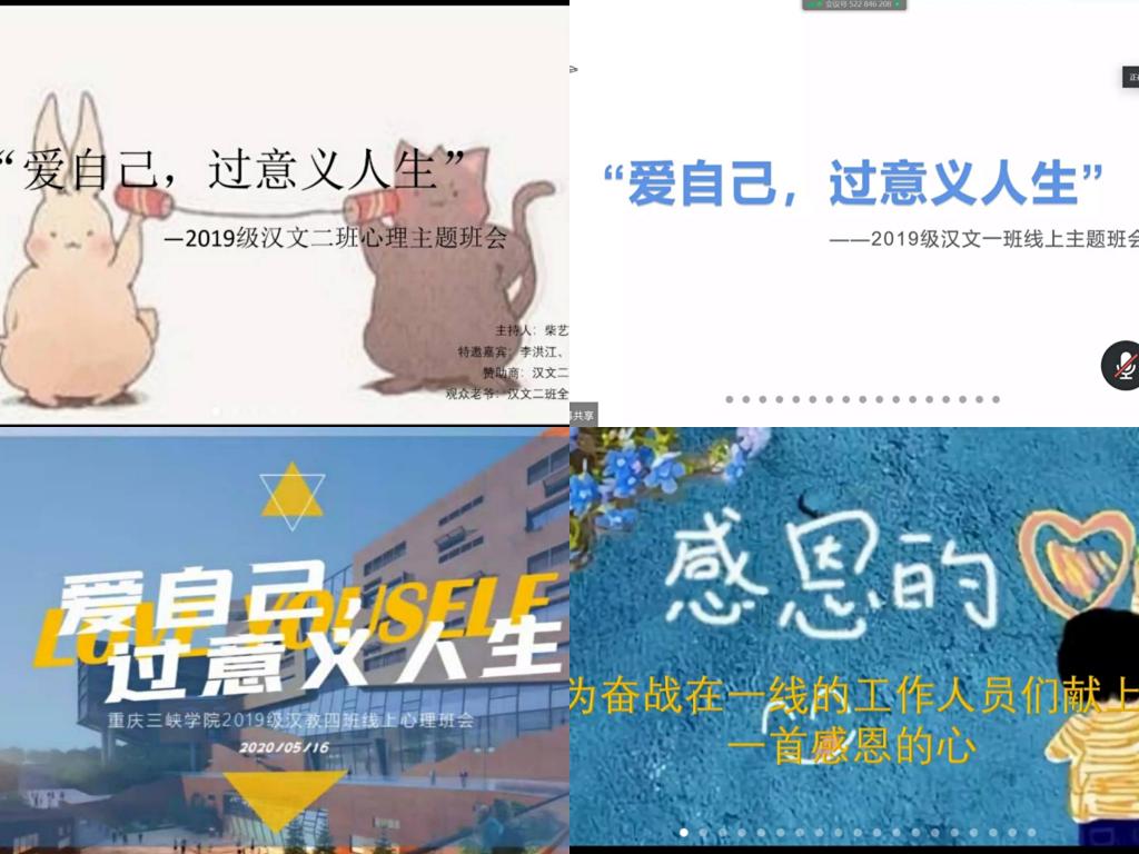 为引导员工积极思考人生意义,以更加饱满的精神面貌迎接返校后的学习和生活,5月16日,公司2019级以班为单位,开展了“爱自己,过意义人生”线上心理主题班会。