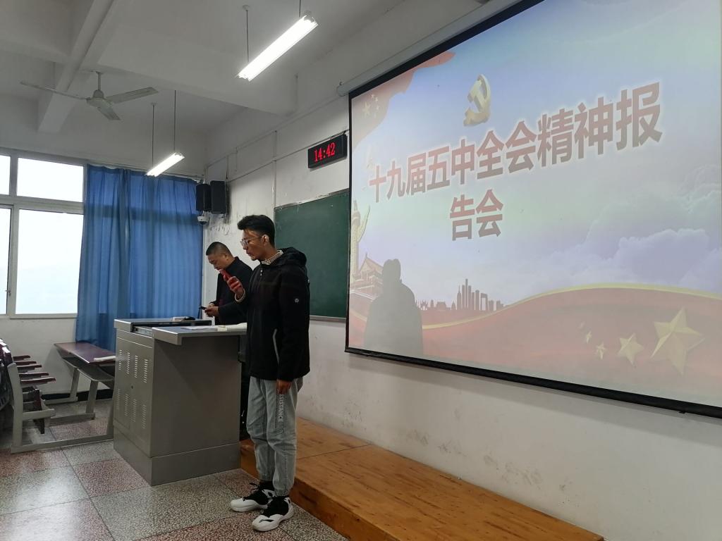 为深入学习贯彻党的十九届五中全会精神,进一步增强公司学子的政治自觉和思想自觉,公司于12月2日下午在明辨楼1教401室召开党的十九届五中全会精神宣讲会。公司2020级汉教4班班长曹雷担任主持人,副经理李俊担任宣讲人,2020级汉教三、四班全体成员参与此次宣讲学习。