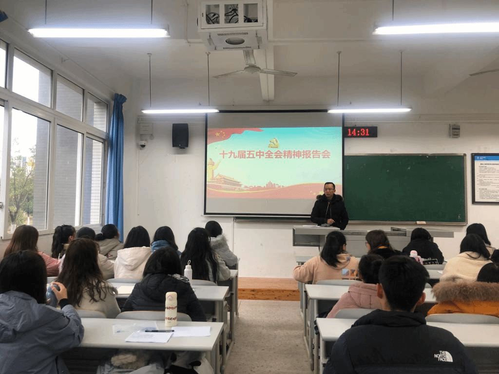 为了深入学习贯彻党的十九届五中全会精神,公司于12月7日下午在明辨楼1栋206召开了十九届五中全会宣讲会,365英国上市公司经理郭作飞担任主讲人,2018级汉语言文学(师范)1班全体同学参与。