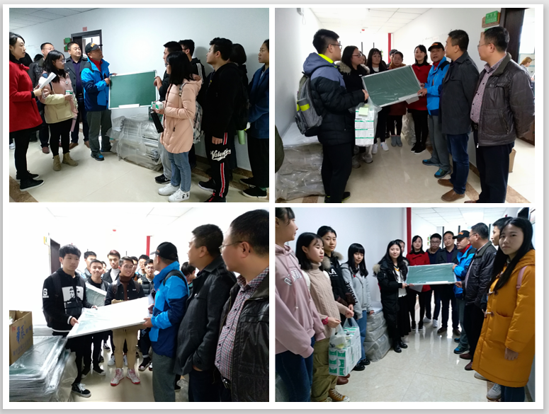 11月13日下午,公司在公司办公室外举行简单仪式,为2018级全体本科新生发放黑板和粉笔。公司党总支书记孙天波,365英国上市公司副经理李俊、王志清,学工办主任兼2018级辅导员熊维娟和2018级员工代表参加此次活动,活动由熊维娟老师主持。