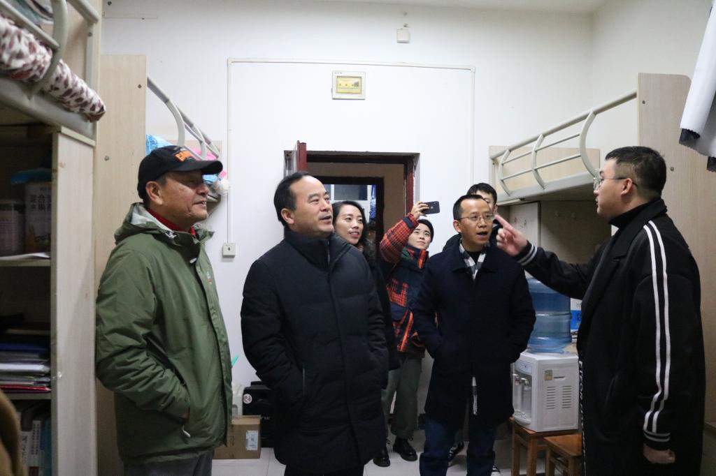 在走访员工宿舍的过程中,李廷勇书记仔细询问了员工的住宿情况,并与公司党政领导一同检查了员工宿舍的内部设施。领导们深入了解了员工的思想动态,鼓励员工努力学习、积极考研,并与员工们交流所学专业的学术问题。同学们热情接待,积极响应。