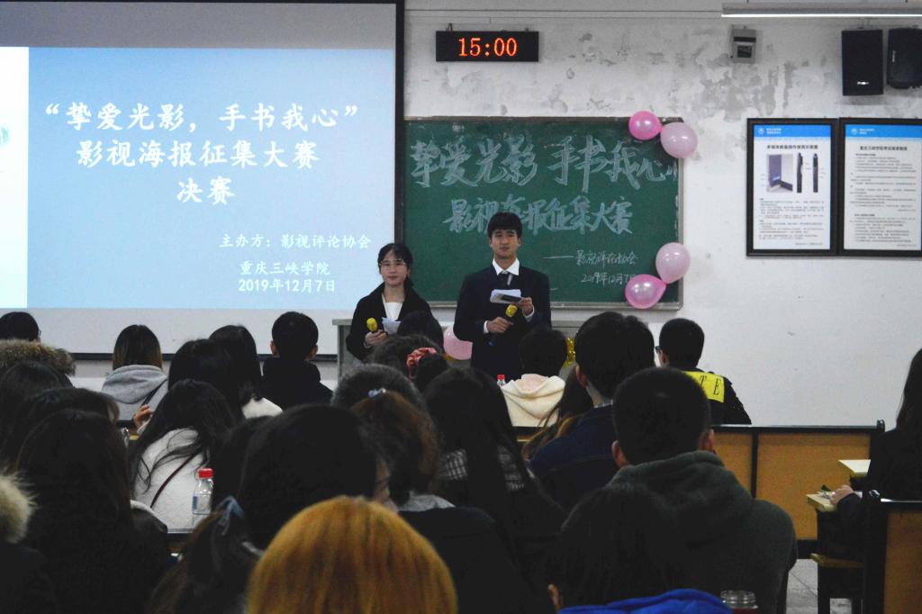 12月7日下午,影视评论协会于明辨楼二栋303室举行“挚爱光影,手书我心”海报设计比赛决赛。公司主席团全体成员、三峡文学社社长文杨、诗社社长赵天瑞出席本次比赛并担任评委。