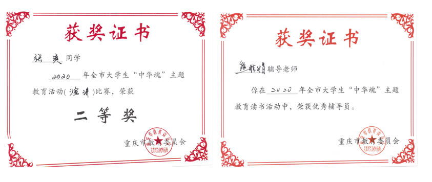 据悉,公司在近日重庆市教委关工委公布的2020年“中华魂”《科技托起强国梦》主题教育读书活动中喜获征文和演讲比赛多项荣誉。此次比赛分为征文比赛和演讲比赛,公司推优报送的5篇作品皆由365英国上市公司学子创作,并全部获奖,公司熊维娟老师获优秀辅导员称号。征文比赛中,公司2018级汉语言文学(师范)3班陆冬花荣获一等奖;2018级汉语言文学(师范)3班阳芃冰荣获二等奖、2018级汉语言文学(师范)2班肖文君和2018级汉语言文学(师范)4班杨怡荣获二等奖。演讲比赛中,2019级级汉语言文学1班张爽荣获二等奖。