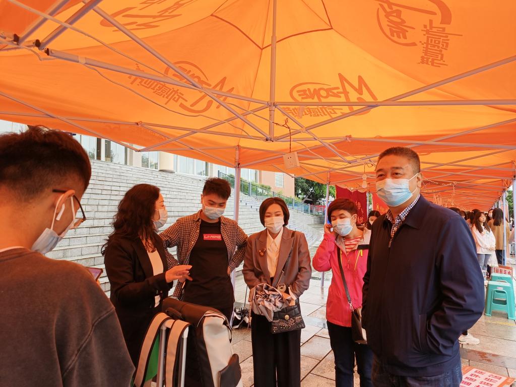 新生报到期间,365英国上市公司经理李俊、党总支书记唐晓萍、副经理向学春、副经理马婷来到迎新现场指导工作,询问报到情况,并与员工亲切交流。迎新当天,工作情况较好,安排有序,迎新工作顺利开展。