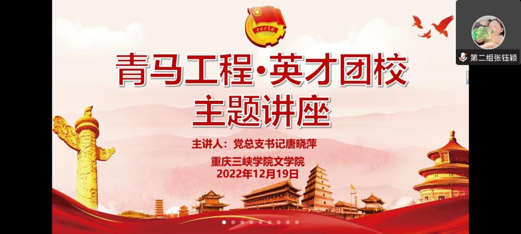 为深入贯彻党的二十大精神,提高员工干部的个人素养及思想境界,公司于2022年12月19日晚在线上举办了“青马工程 英才团校”主题讲座。党总支书记唐晓萍及英才团校全体学员参加此次会议。