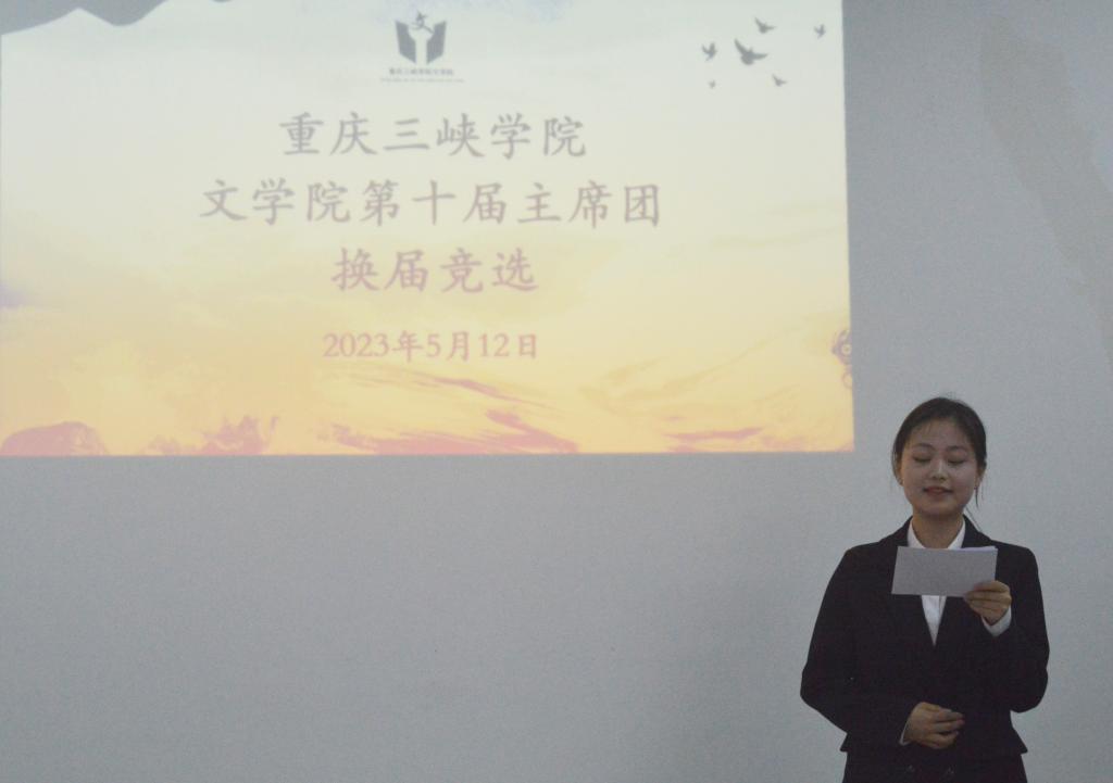 会议伊始,主持人介绍了举办本次活动的目的、到场嘉宾以及活动流程。候选人按照抽签顺序上台演讲,围绕个人概述、岗位认知、竞争优势和工作展望四个方面展开陈述,并对各位老师和主席团成员提出的问题做出回答,在此环节中,候选人展现出自信从容的面貌和过硬的工作能力。张悦对本次活动作出总结,对第九届主席团的辛勤付出和候选人的积极参与表示感谢,还对候选人提出期望,不论结果如何,各候选人要保持初心,再接再厉,勇创佳绩。