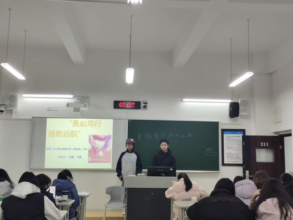 为缓解同学们考前的焦虑情绪,帮助同学们树立自信,以良好的心态面对考试,取得优异成绩。12月11日—12月17日,公司团总支心理健康教育工作部兼员工权益维护部组织2023级汉文班、汉教班全体同学在班级早晚自习室开展“求知行远,引心向阳”和“勇毅笃行,扬帆远航”主题班会。班会由各班心理委员组织。