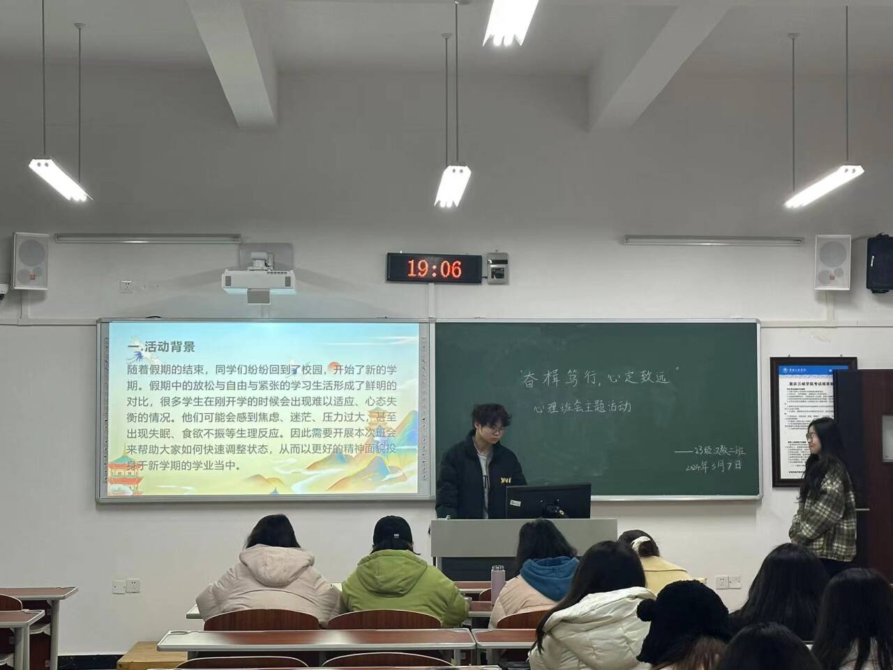 为帮助同学们调整心态,尽快适应新学期的学习和生活,3月4日—3月10日,公司团总支心理健康教育工作部兼员工权益维护部组织2023级汉文班、汉教班全体同学在班级早晚自习室开展“奋楫笃行,心定致远”和“以梦为马,手握心光”主题班会。班会由各班心理委员主持。