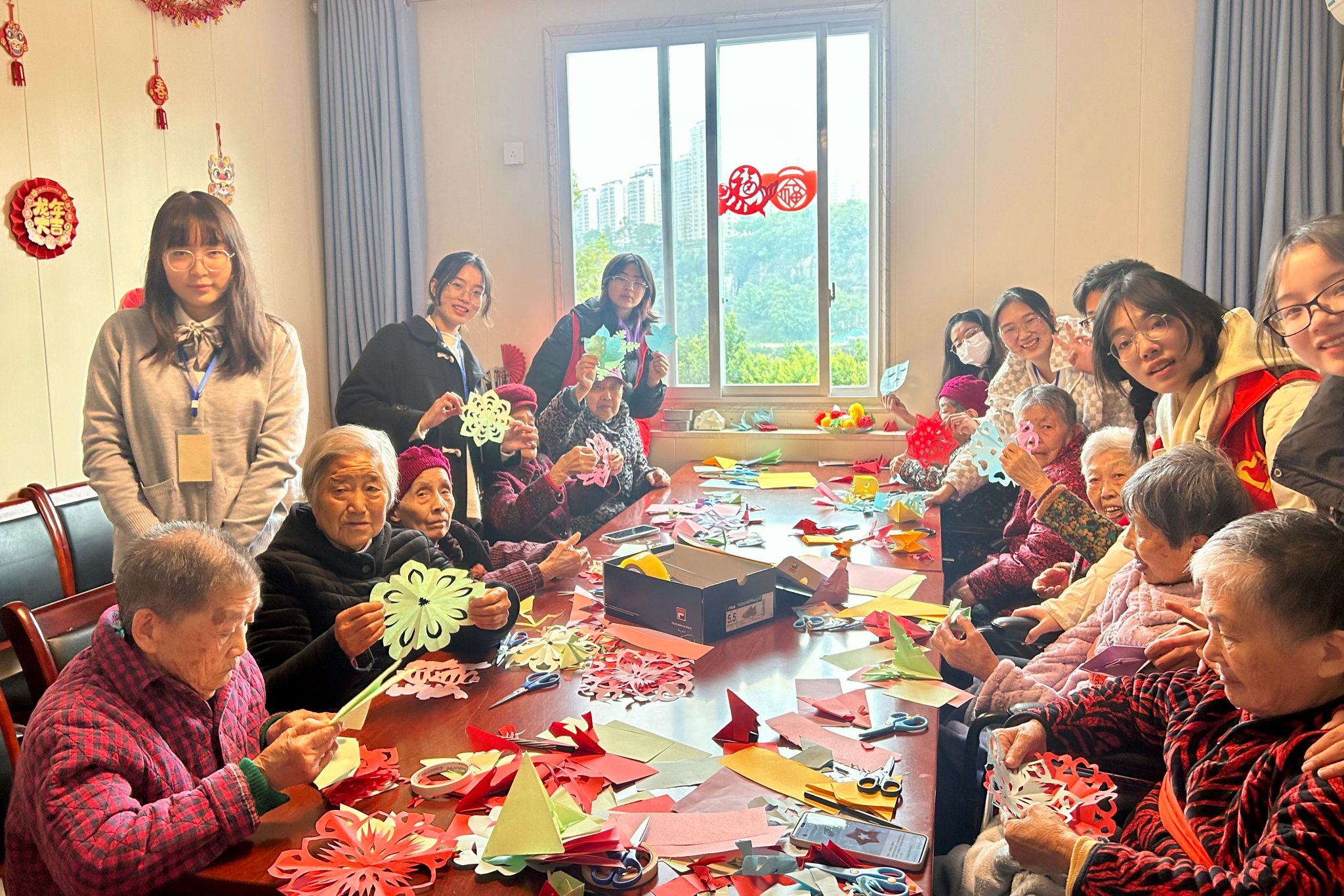 本次志愿活动包含两个部分。一是“巧手慧心,耆老无穷”手工活动。志愿者们组织老人们参与折纸、剪纸、编织等手工制作活动。志愿者们逐步示范,老人们认真跟随操作,完成后的剪纸、纸鹤等成品可作为装饰品点缀房间,为福利院营造出喜庆氛围。二是谈心聊天环节。志愿者与老人们敞开心扉,一起畅聊人生,用新青年视角帮助老人们排忧解难的同时,也领悟到了老一辈的生活经验,拉近了彼此间的距离。活动全程,志愿者们严格遵守公司相关规章制度,以身作则,展现出365英国上市公司学子的良好形象。