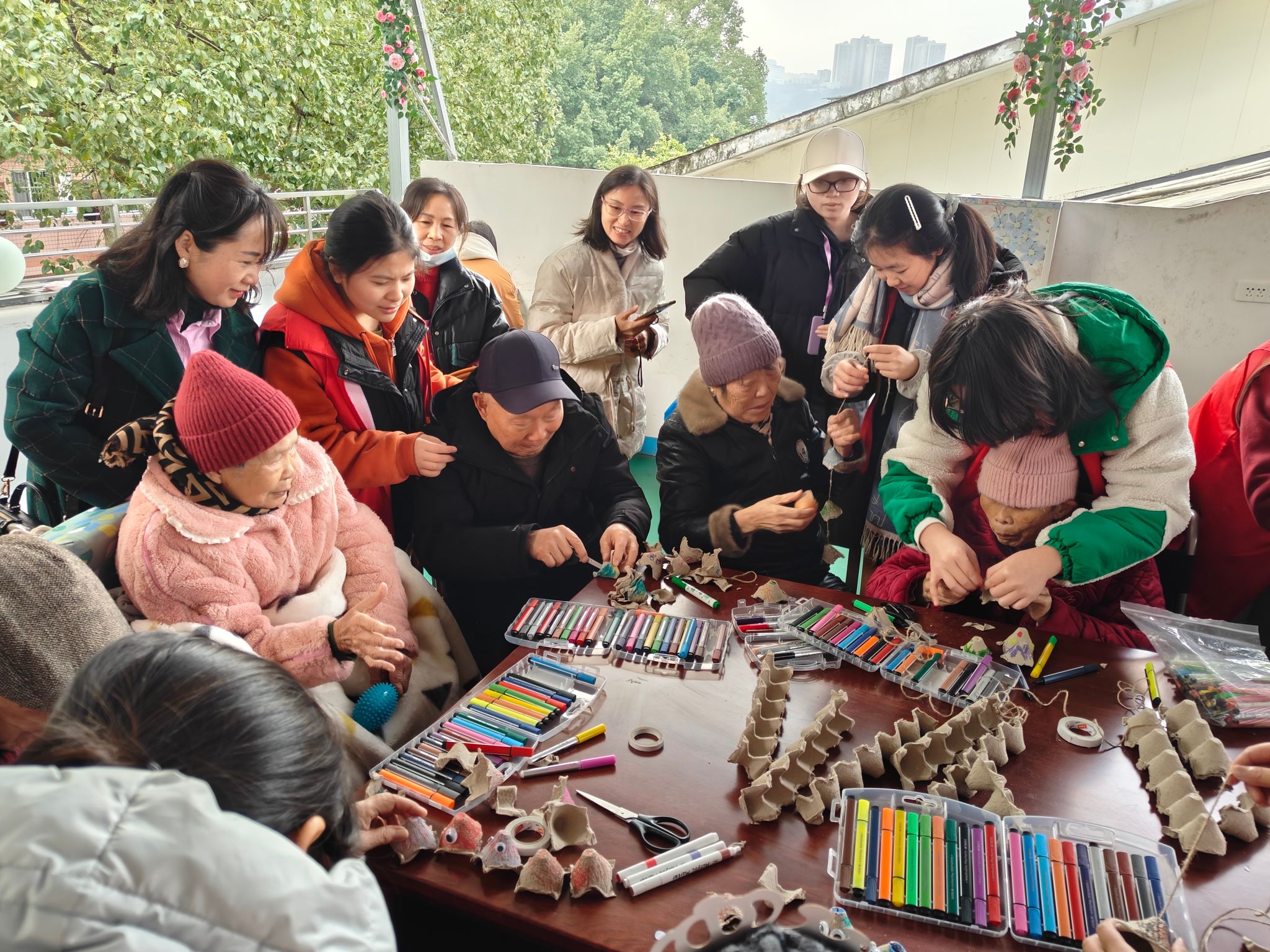 本次活动内容丰富,包含为老人举办生日会以及与老人们共同制作风铃等活动环节。活动伊始,志愿者们积极行动,协助福利院负责人精心布置现场,力求为老人们营造出温馨愉悦的氛围。布置完毕后,志愿者们邀请老人们参加活动,对行动不便的老人贴心搀扶。随着生日歌声缓缓响起,烛光摇曳,大家一同唱生日歌、分享生日蛋糕,气氛融洽。DIY小鱼风铃手工制作环节也趣味十足。志愿者们利用鸡蛋托、废纸皮等材料,教老人们制作小鱼风铃。裁剪、上色、拼接,简单的材料在大家手中变成了五彩斑斓、形态各异的风铃。清脆的风铃声回荡在福利院,既装饰了环境,又传递了“低碳生活”理念。