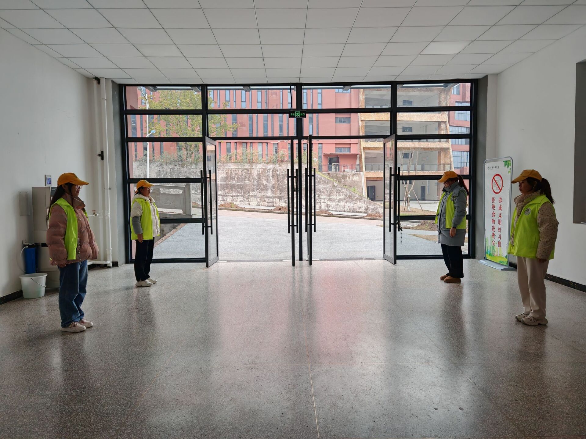 活动期间,执勤员工每日分三个时段开展工作:清晨与午间时段,员工志愿者在博学楼2栋及1、2栋连廊区域进行秩序引导,规范教学楼出入口管理;晚间时段则重点开展山顶自习室环境维护,确保学习空间整洁有序。全体执勤人员身着统一标识服装,以饱满的精神状态投入服务,充分展现了公司学子积极向上的精神风貌。