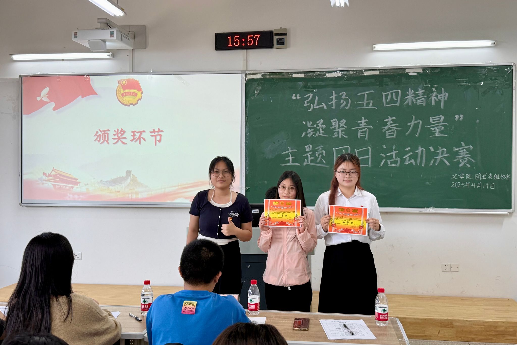 经前期严格选拔,十位优秀选手脱颖而出。比赛中,选手们紧扣主题,从经典书籍出发挖掘五四精神内涵,结合新时代青年使命畅谈感悟。他们用生动的表达、独到的见解,带领观众回溯历史,感受五四精神的磅礴力量。经过激烈角逐,张钰洁同学凭借出色表现斩获一等奖;杨乐、张妍煜同学荣获二等奖;李泺源、陶欣雨、刘竞霜同学获得三等奖;孙静佳、刘佳、任鹏宇、程雅思同学获得优秀奖,嘉宾分别为获奖者颁发奖状。