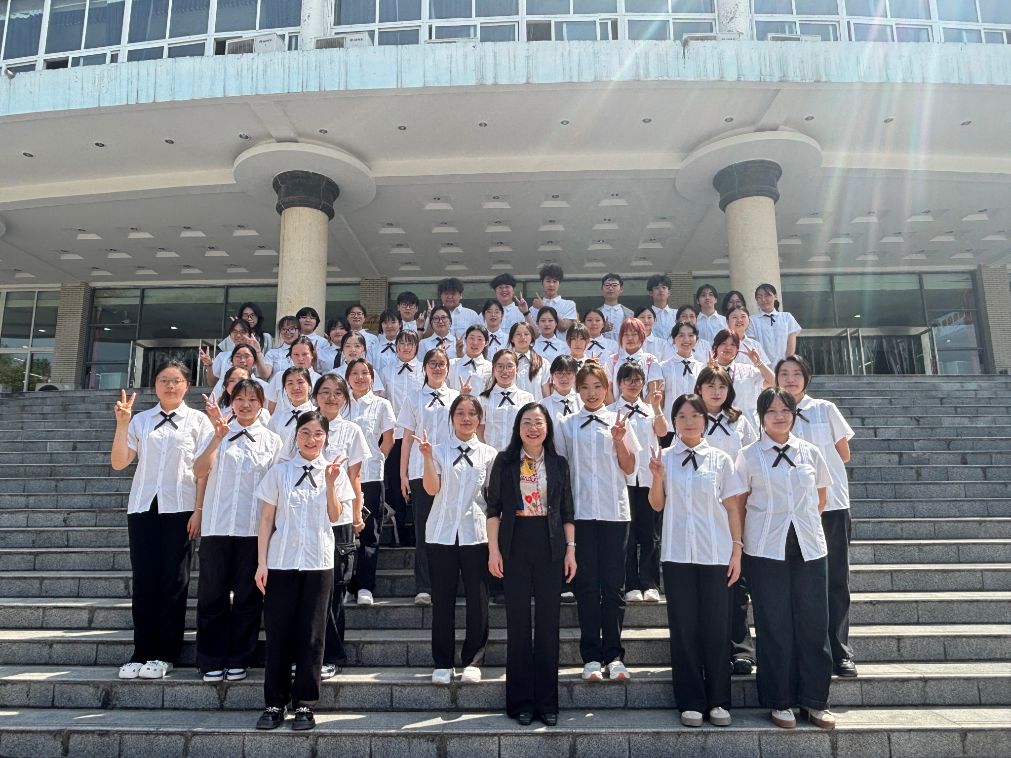 4月17日下午,公司党总支书记唐晓萍与2023级汉语言文学(师范)1班于桂花苑食堂广场开展领导干部联系班级活动。