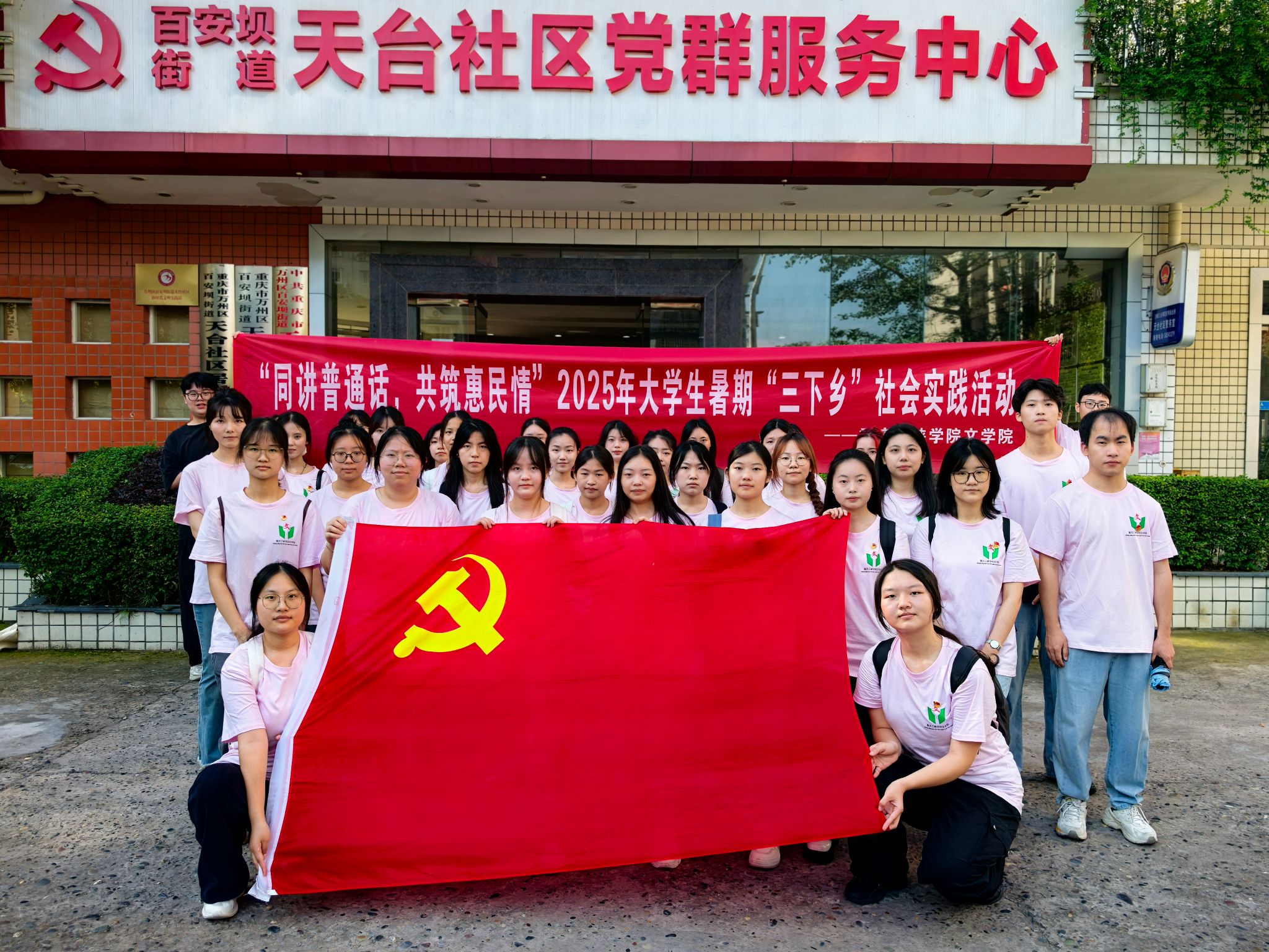 6月27日上午,公司老员工暑期“三下乡”“声”入人心推普实践团与天台社区联合开展了惠民演出活动。天台社区居民、实践团全体成员共同参与此次活动。