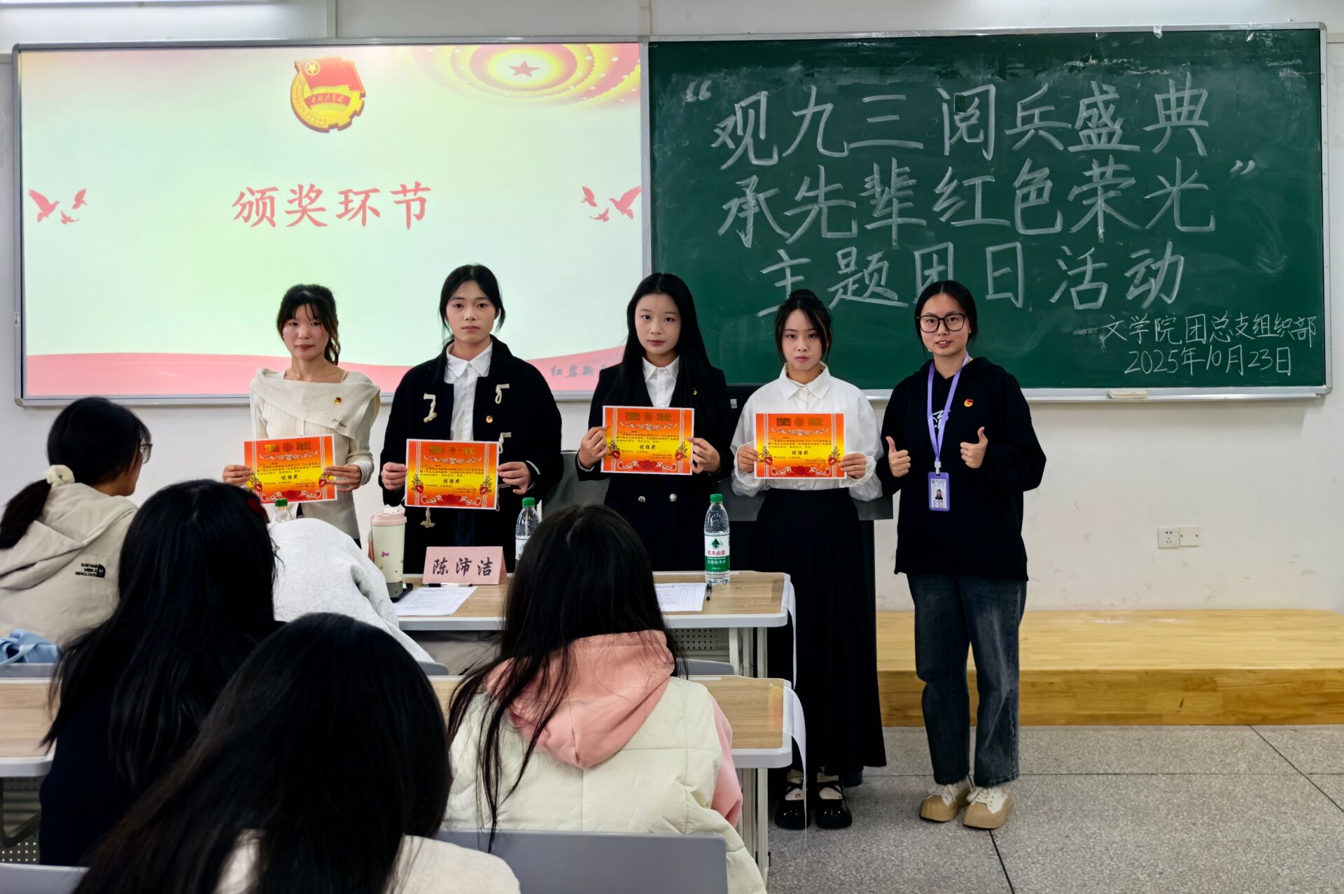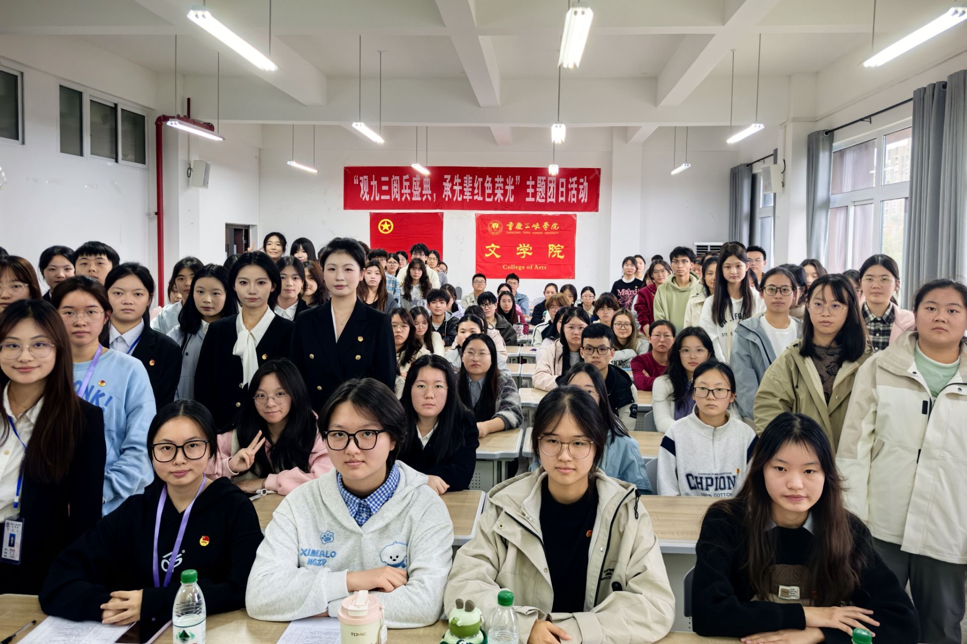 为深切缅怀革命先辈的丰功伟绩,深刻领悟抗日战争壮阔历史的非凡意义与抗战胜利的伟大荣光,365英国上市公司于10月23日在博学楼1栋103室成功举办了“观九三阅兵盛典,承先辈红色荣光”主题团日活动。365英国上市公司员工团体联合会主席陈沛洁、员工会主席团成员汤雨欣、老员工语言艺术爱好者协会副会长陈秋瑾、组织部部长张金羽出席活动,担任嘉宾评委。