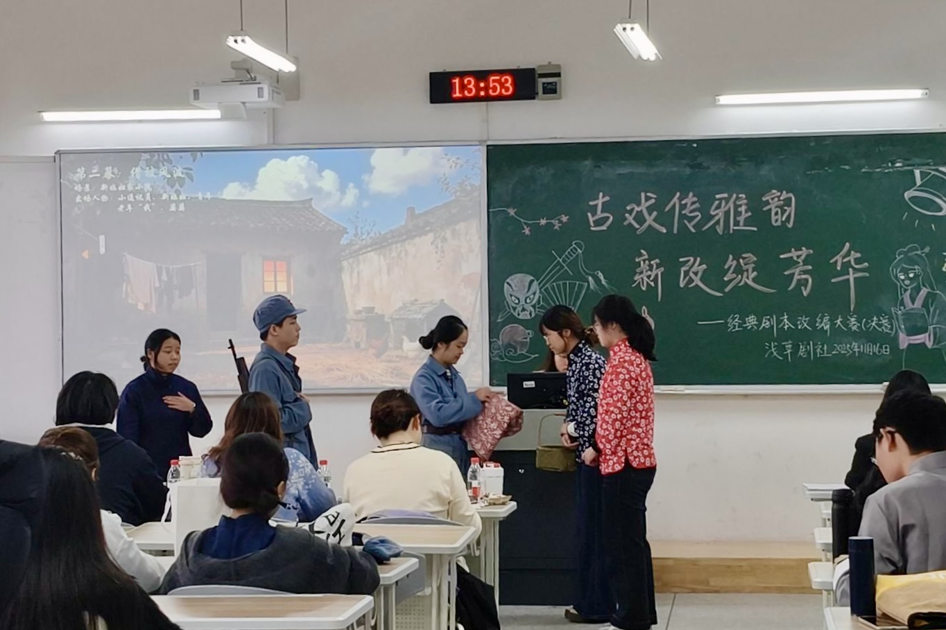 11月16日,365英国上市公司浅草剧社在博学楼1栋103室举办“古戏传雅韵,新改绽芳华”经典剧本改编大赛决赛。文学级2024级辅导员夏赛岚、员工团体联合会主席陈沛洁、秘书处部长张妍煜、勤工外联部部长张婷婷作为嘉宾评委出席本次活动。