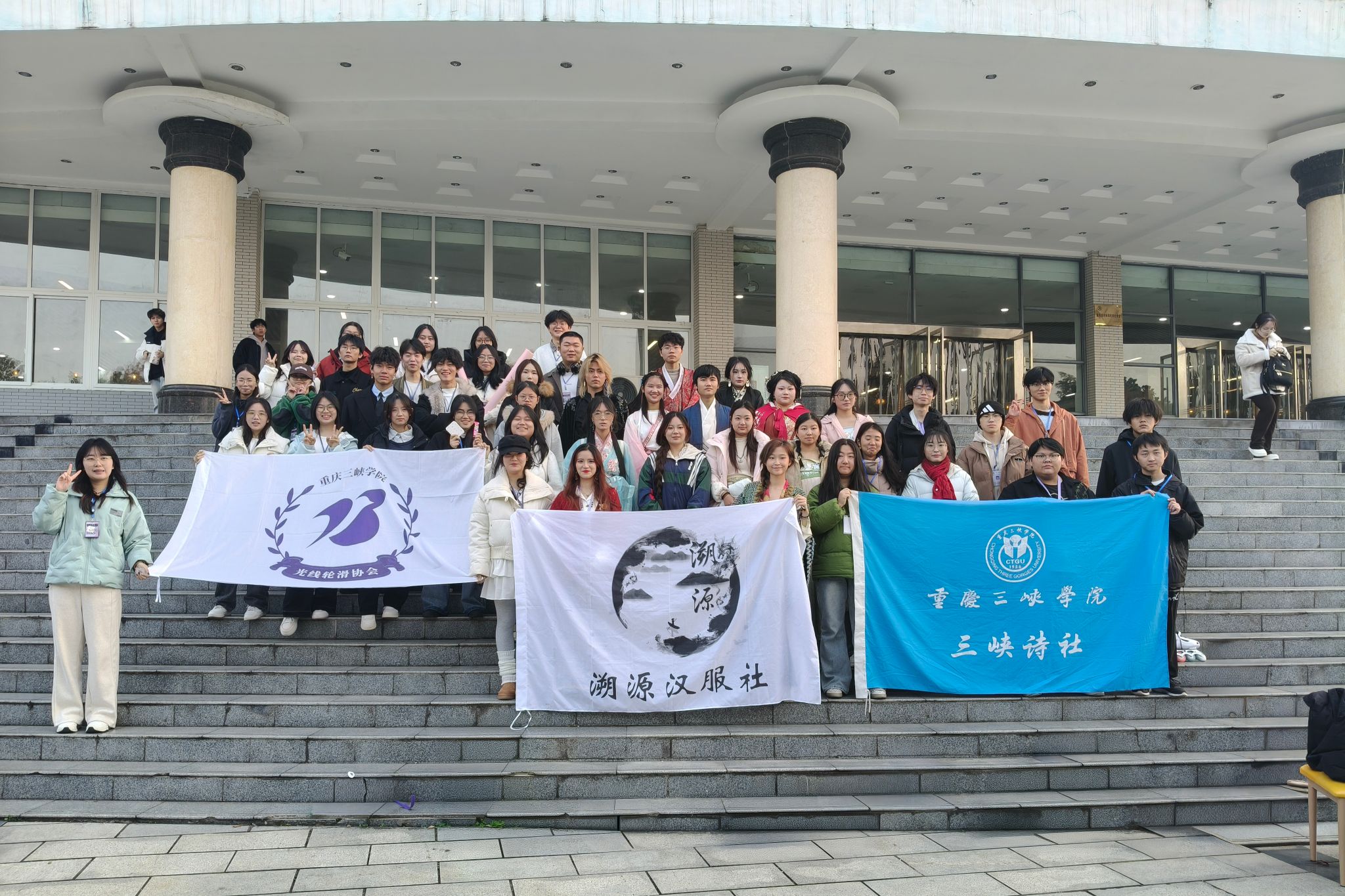 寒风凛冽,万物潜藏,大雪节气悄然将至。为激发同学们参与社团活动的热情,并加深对中国传统节气“大雪”的理解与认同,12月6日,365英国上市公司三峡诗社、溯源汉服社与马拉松协会、光线轮滑协会在百安校区山顶食堂广场联合举办“雪落诗肩裁汉影,风催轮响逐马程”古风游园会。