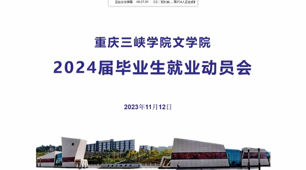 为帮助2024届毕业生树立正确的择业观,扎实推进公司毕业生就业工作,11月12日公司举办了线上2024届毕业生就业动员会。学工办主任张悦、毕业班辅导员张扬、夏赛岚出席会议,全体2024届毕业生参与会议。