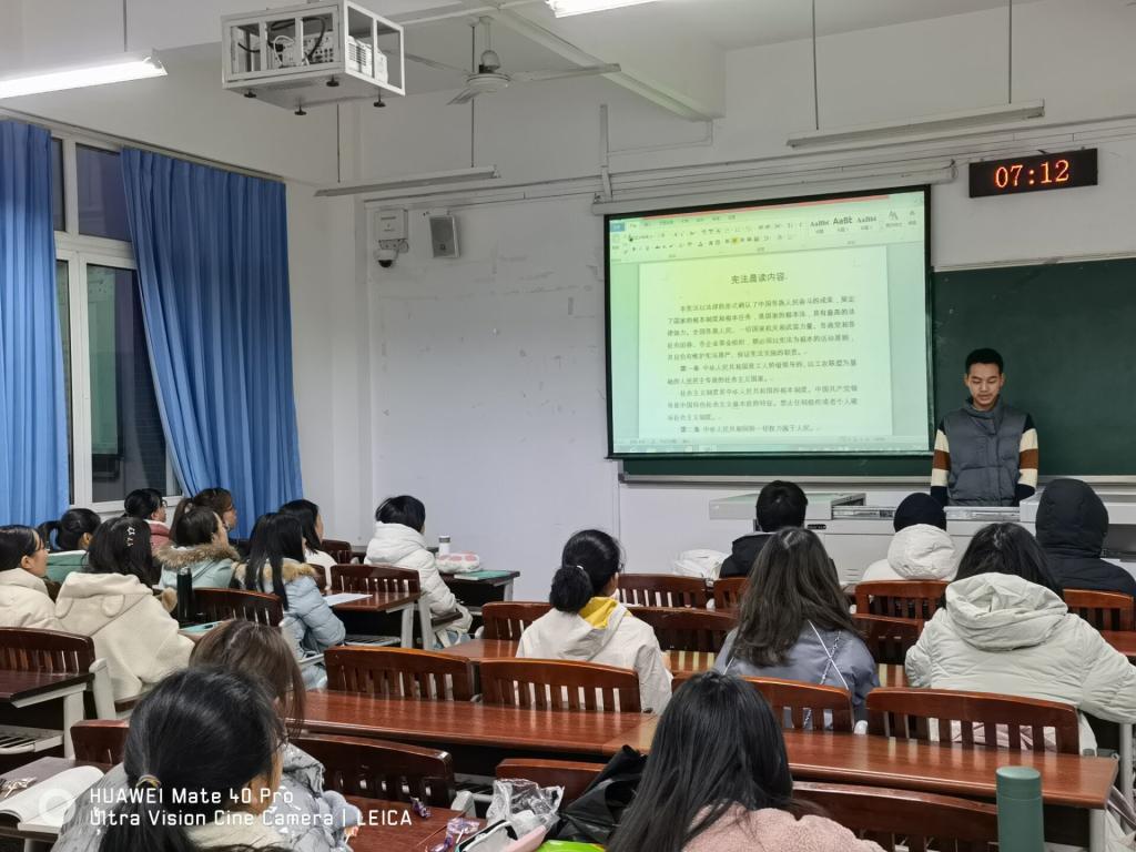 2020年12月4日是第七个国家宪法日。为进一步弘扬宪法精神,增加同学们的法治意识,12月4日,公司2020级各班组织全体同学利用早自习诵读宪法部分内容。同学们在诵读过程中认真、严肃,通过诵读深入学习了宪法精神,提高了同学们对法律的认知,增强了同学们对法律的敬畏之心。