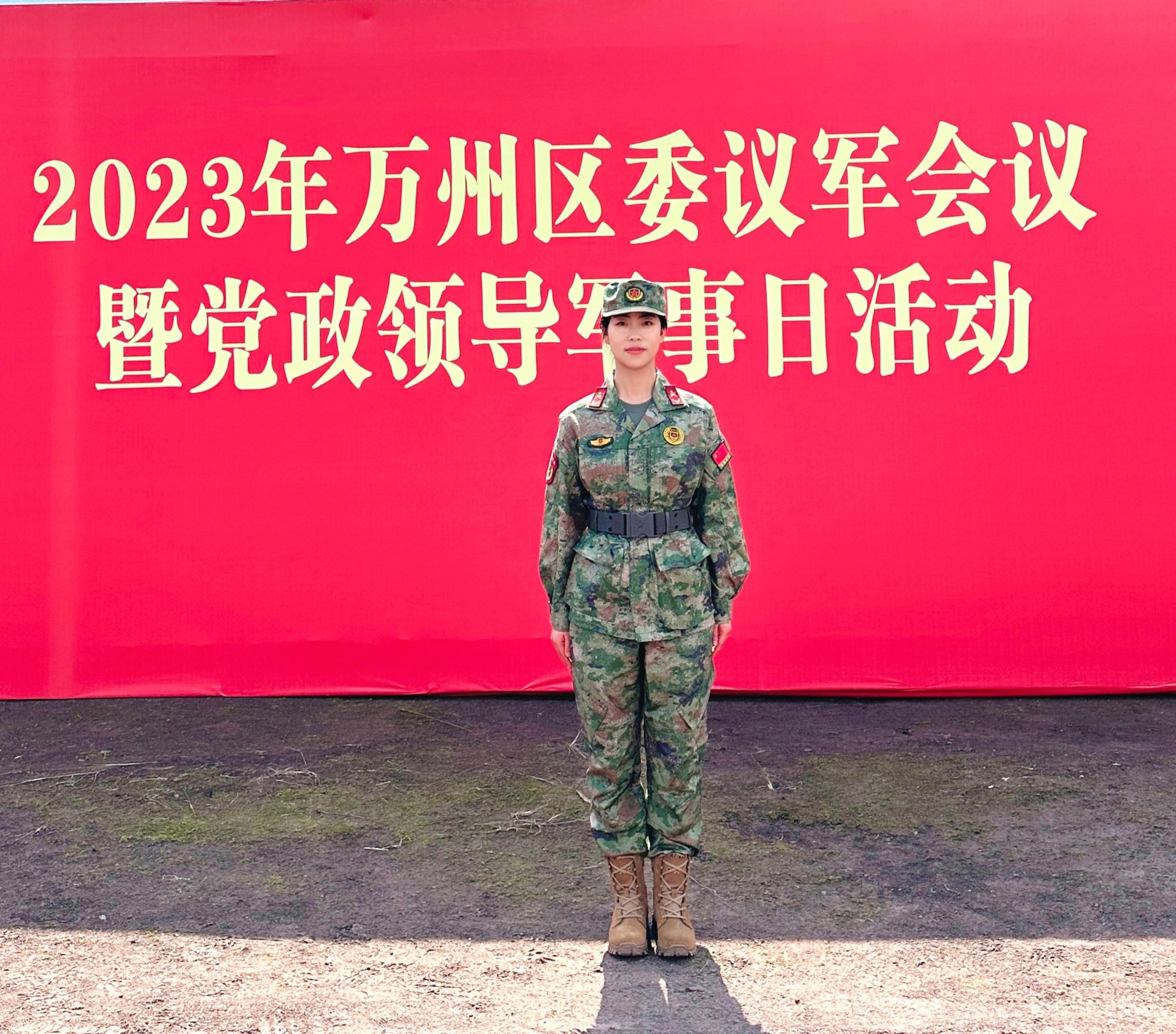 退伍复学后,林慧敏并没有因为离开了军营而褪去那份军人的本色。相反,她将在军队中养成的优秀品质带到了校园内外,积极参与各类校内外实践活动。在“2023年万州区委议军会议暨党政领导军事日”任务中,她担任讲解员一职,在万州区委领导面前,她用清晰的讲解、专业的知识,将武器装备的相关内容介绍得详尽且生动,赢得了大家的赞赏。