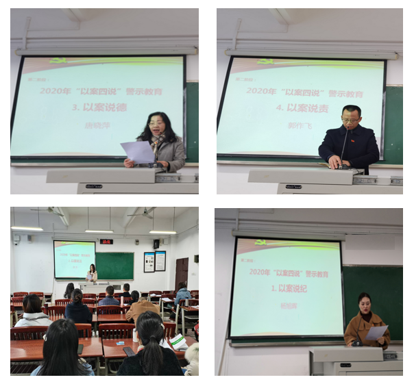 会上,全体党员教师观看了近年来重庆市不同领域的违法违纪案例警示教育片。随后,党总支纪检委员杨旭晖,党总支副书记姜希,党总支书记唐晓萍,党总支副书记、经理郭作飞分别从“纪、法、德、责”等方面警示大家以案为训、以案为戒,事事以纪律“警戒线”自律,处处以法律“高压线”自警,时时以道德“生命线”自省,以“初心和使命”擦亮政治底色,扎实抓好“以案四说”,持续推进“以案四改”,进一步筑牢拒腐防变的思想防线。