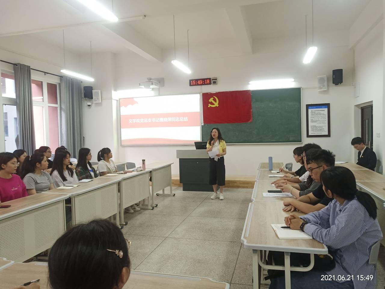 会议最后,公司党总支书记唐晓萍进行总结。在对38名新发展预备党员表示祝贺的同时,她对每一位党员都提出了深刻的党性教育,每个人都要接受思想上的熏陶,人格上的磨练。同时她提出三点要求:一是要坚定信念,从组织上入党、思想上入党,坚定党的宗旨,时刻为人民服务,增强党性修养;二是希望新党员在大学期间学有所成,毕业生党员以激情满满步入社会;三是希望所有党员以党史学习为契机,身体力行,实现小我与大我的有机统一。