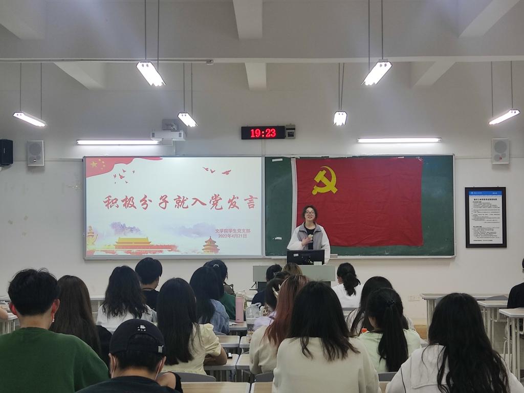 会上,各位同志观看了学习教育视频。视频通过讲述多个党史故事,展现了我党奋斗历程的艰辛与发展路途的曲折,体现了共产党员的坚定信念,为人民服务的决心,端正了各位积极分子的入党动机,进一步坚定了理想信念,增强了政治定力。随后,入党积极分子围绕“为什么入党”“入党条件是什么”“如何坚定信念,加强党性修养”等开展交流讨论。张梦谣、唐佳佳等12名入党积极分子主动上台讨论交流,其中张梦谣同志联系实际,结合信仰,用身边党员作为模范,阐述了自己的入党动机,得到大家的赞赏,万采发同学结合亲身经历与时事新闻,说明了如何加强党性修养的系列问题,也让大家受益匪浅。