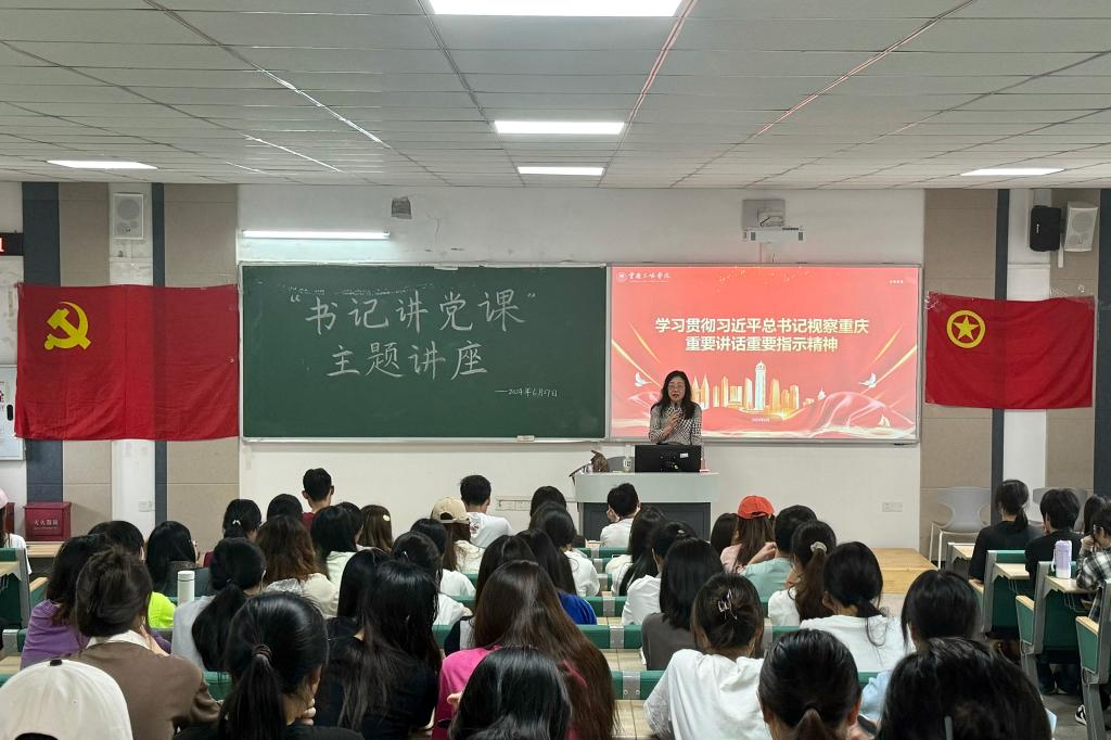 讲座伊始,唐晓萍带领同学们从时间、空间、发展三个维度回顾了党的十八大以来习近平总书记对重庆的视察历程。随后,唐晓萍从四个方面出发,详细展开讲解。首先,她概述了习近平总书记重庆行的总体情况,通过具体的站点考察,深入分析了总书记对于重庆发展的殷切期望;其次,她重点解读了总书记在听取重庆市委和市政府工作汇报时发表的重要讲话精神以及在新时代推动西部大开发座谈会上的重要讲话内容,强调了在新的历史起点,重庆要勇担历史使命,推动高质量发展;再次,她要求全体师生要将习近平总书记重要讲话精神转化为推动工作的强大动力,做到思想与行动的高度统一;最后,她要求同学们要以本次宣讲会为契机,深入学习贯彻习近平新时代中国特色社会主义思想,进一步加强对重要讲话精神的学习。