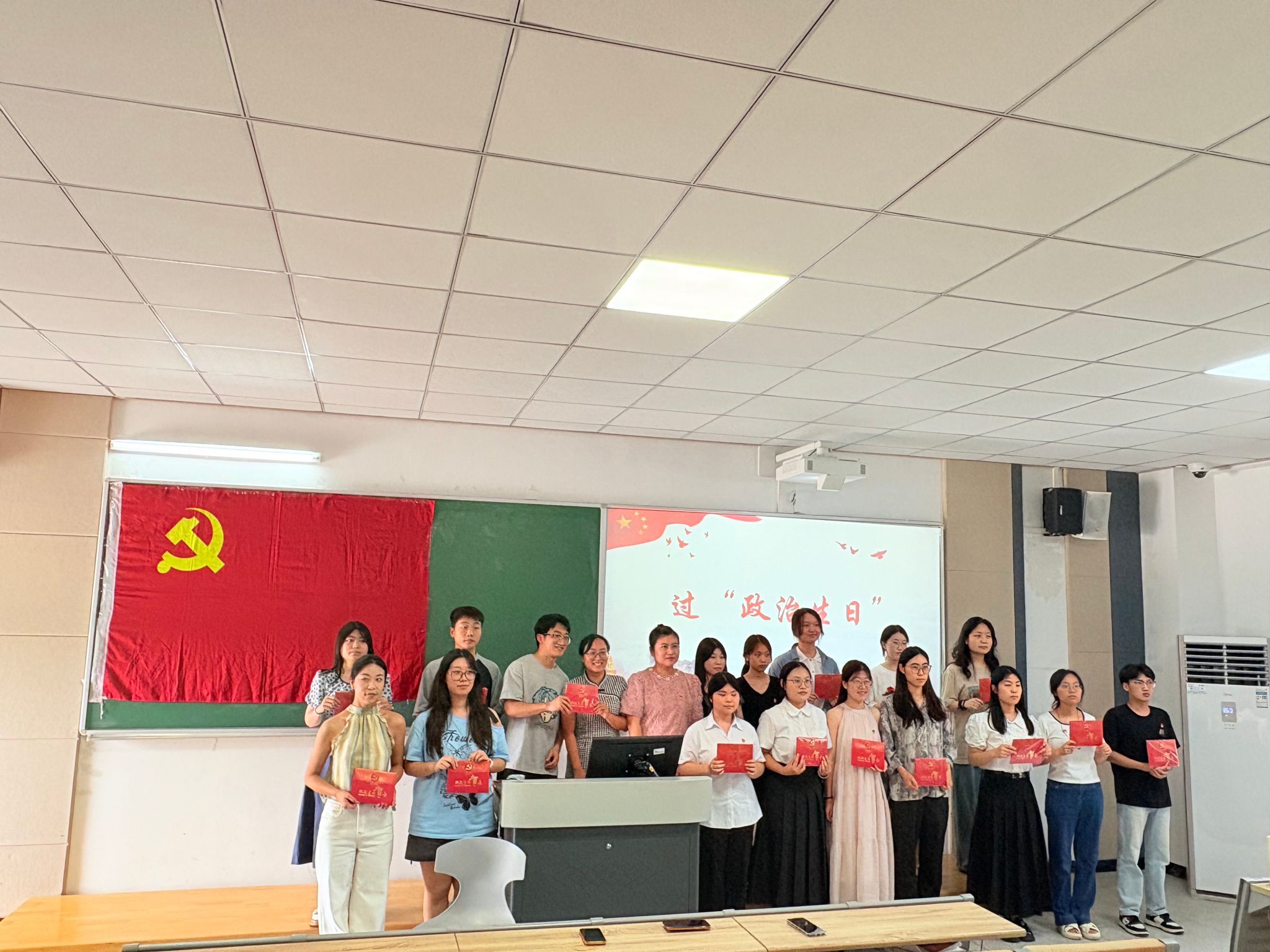 张悦、陈进为党员同志分发政治生日贺卡和礼物,希望所有党员同志带着这份生日祝福,在今后的工作和学习中,始终以党员标准严格要求自己,用实际行动践行党员的初心使命。