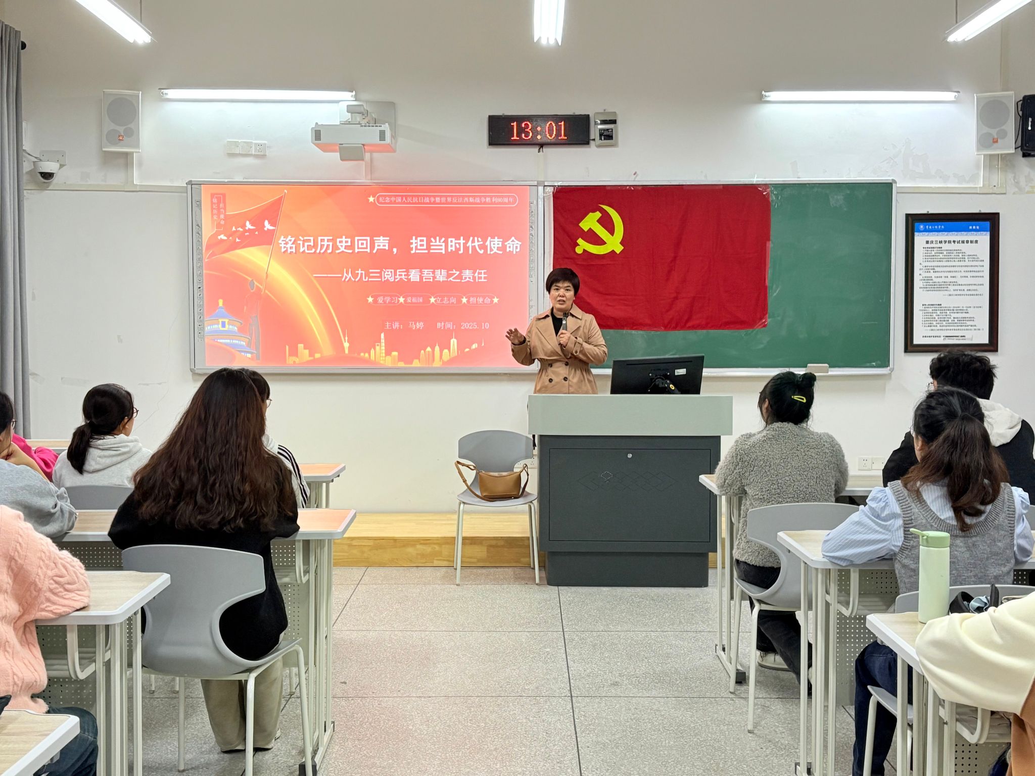 为弘扬爱国主义精神,切实强化青年员工的历史责任感与时代使命感,10月23日下午,公司党总支员工党支部于博学楼1栋102室开展了“铭记历史回声,担当时代使命——从九三阅兵看吾辈之责任”专题党课。本次党课由公司党总支副书记、副经理马婷主讲,第87期入党积极分子全体学员参与。